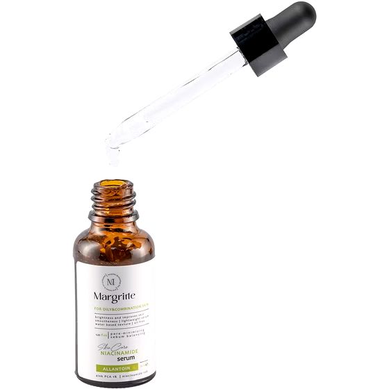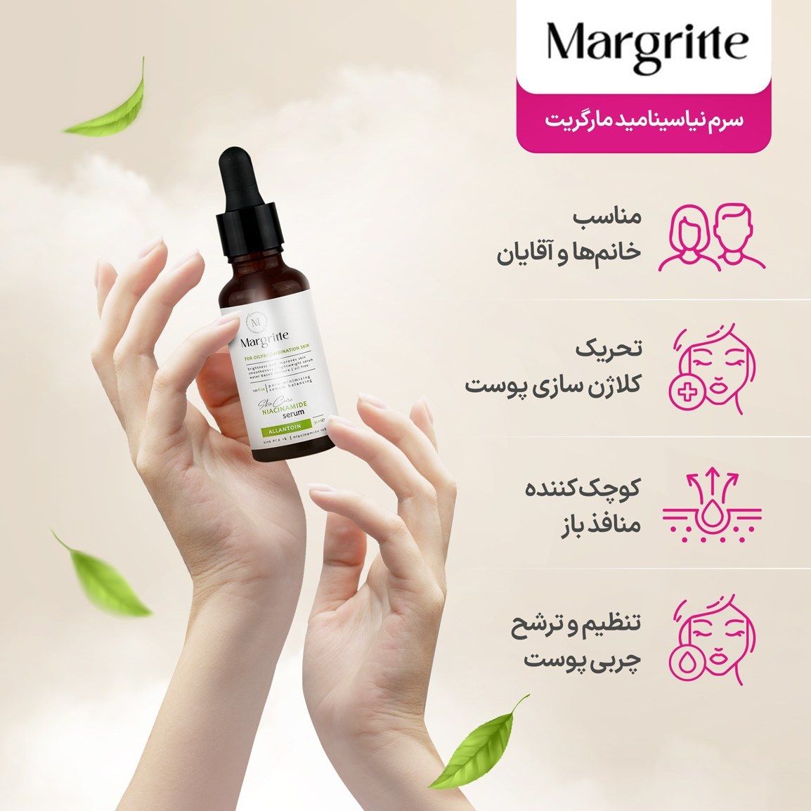 سرم نیاسینامید مارگریت مخصوص پوست چرب و مختلطه و همونطور که از اسمش معلومه، مادهی اصلیش نیاسینامید (ویتامین B3) هست 🌿