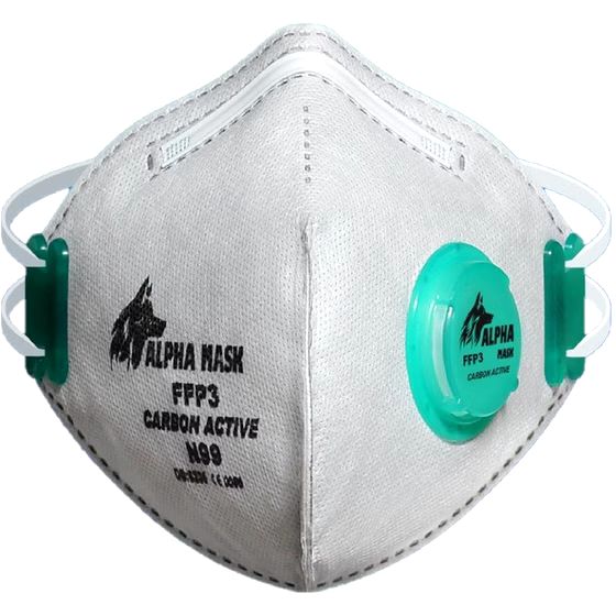 😷 ماسک تنفسی آلفا ماسک 7 لایه مدل N99 Carbon Active – بسته ۱۲ عددی 😷