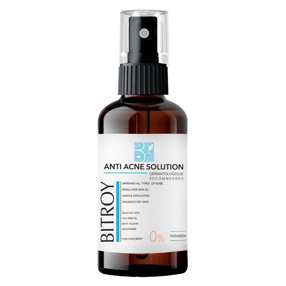 محلول مناسب پوست جوش دار بیتروی حاوی ترکیبات موثر سالیسیلیک اسید، نیاسینامید، روغن درخت چای، جهت از بین بردن آکنه می باشد. لایه برداری ملایم، تنظیم ترشح چربی پوست و ترمیم کنندگی جای جوش از مزایای دیگر این محصول است، همچنین با دارا بودن ترکیبات تسکین دهنده، به رفع التهابات پوستی کمک می کند. این محصول جهت استفاده پس از اصلاح به منظور جلوگیری از ایجاد آکنه و موی زیر پوستی نیز توصیه می گردد و برای رفع جوش های دوران بلوغ گزینه مناسبی می باشد.