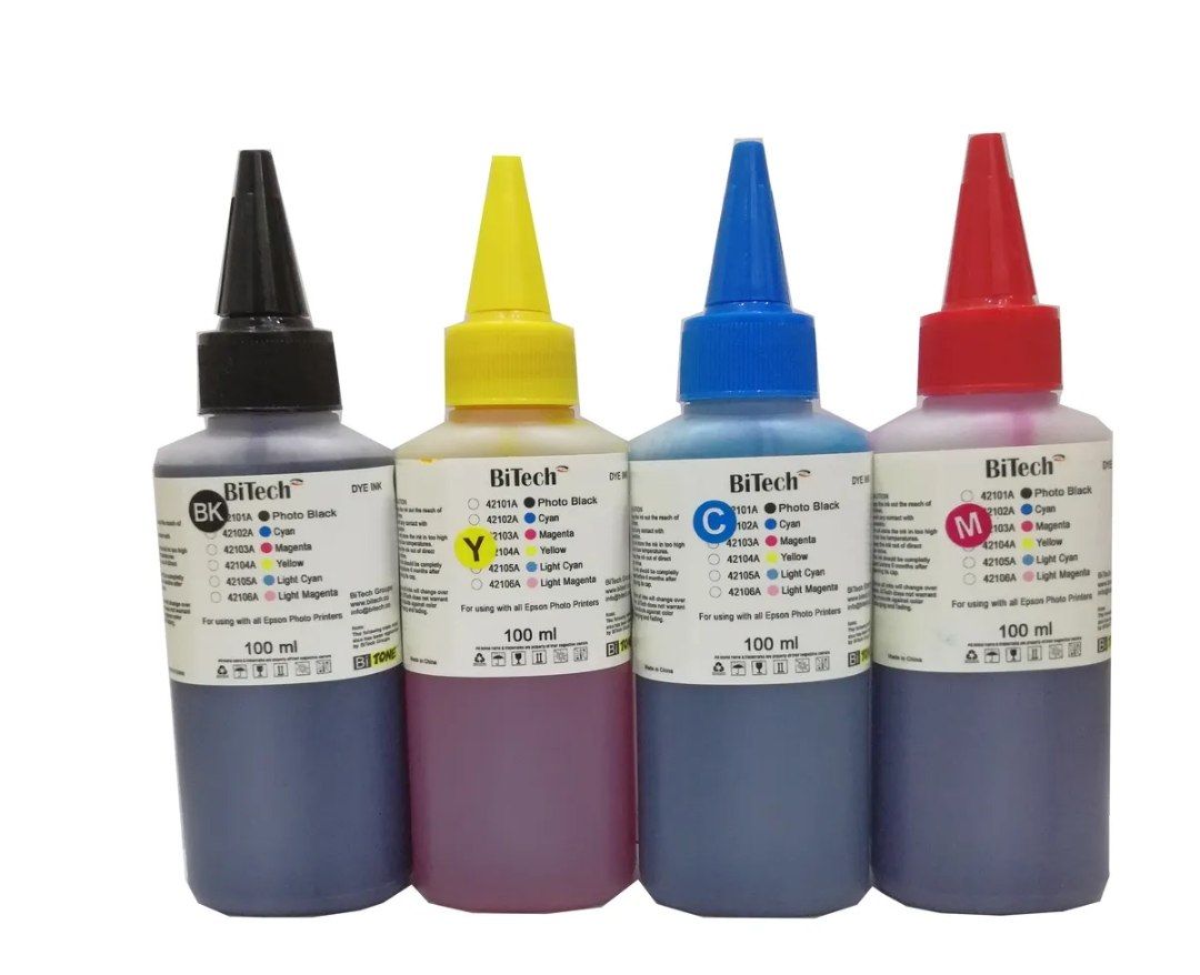 مهم ترین ویژگی این جوهر این است که دارای حلال می باشد که باعث تمیزکنندگی هد دستگاه شما می شود. جوهر 100 میلی لیتر بایتک برای پرینترهای اپسون وزن : 100 میلی لیتر مخصوص تمام پرینترهای جوهر افشان اپسون 4 رنگ